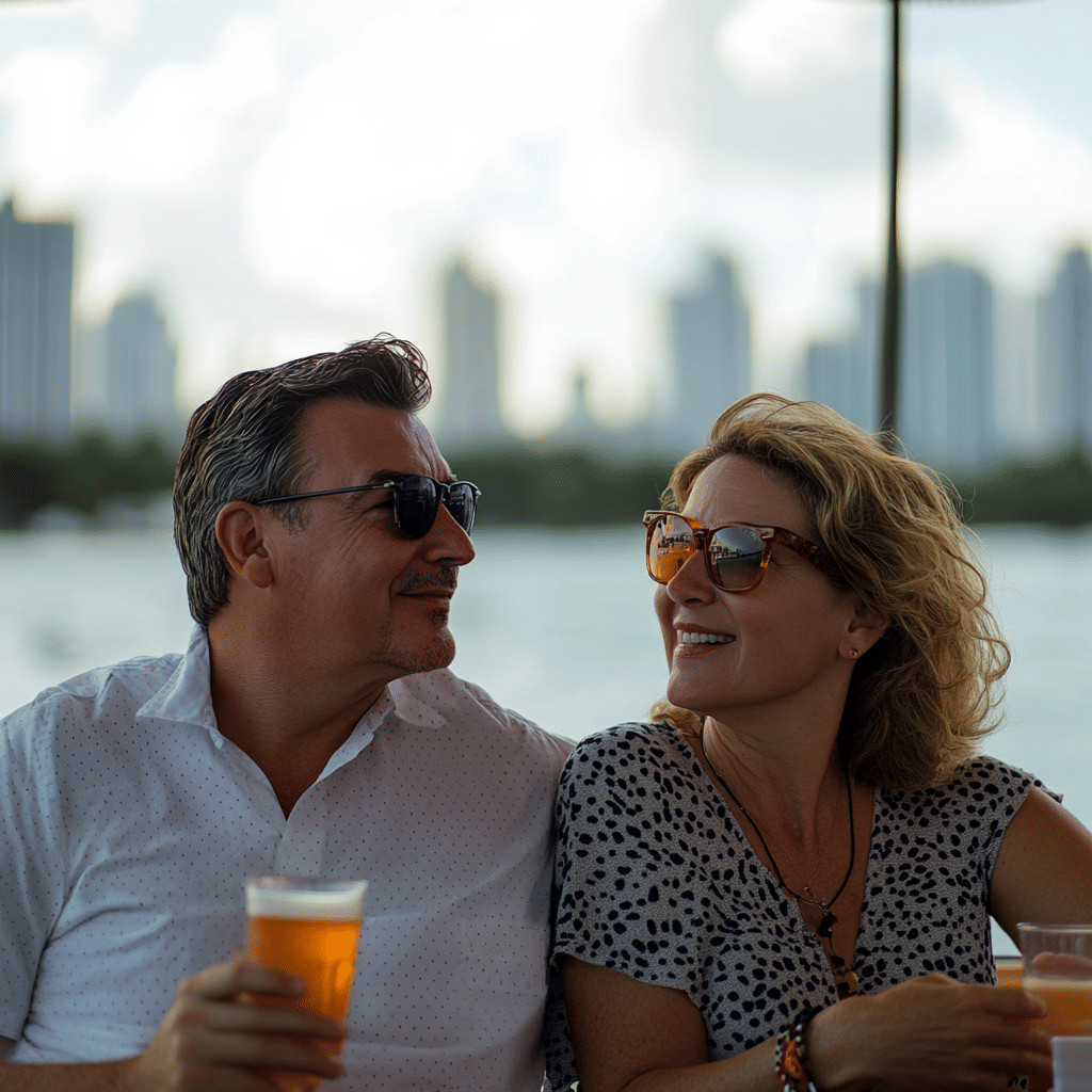 The 7pm Miami Sunset Cruise is timed perfectly to capture the city in all its glory. It offers a unique opportunity to witness the city’s astonishing transformation from the warm glow of daylight, through the romantic ambiance of a sunset, to the vibrant allure of night. During daylight hours, you’ll enjoy the best visibility of Miami’s famous sights and landmarks. As the sun sets and night falls, you’ll be treated to the spectacular sight of the Miami skyline illuminated, capping off what is truly an optimal sunset cruise experience.